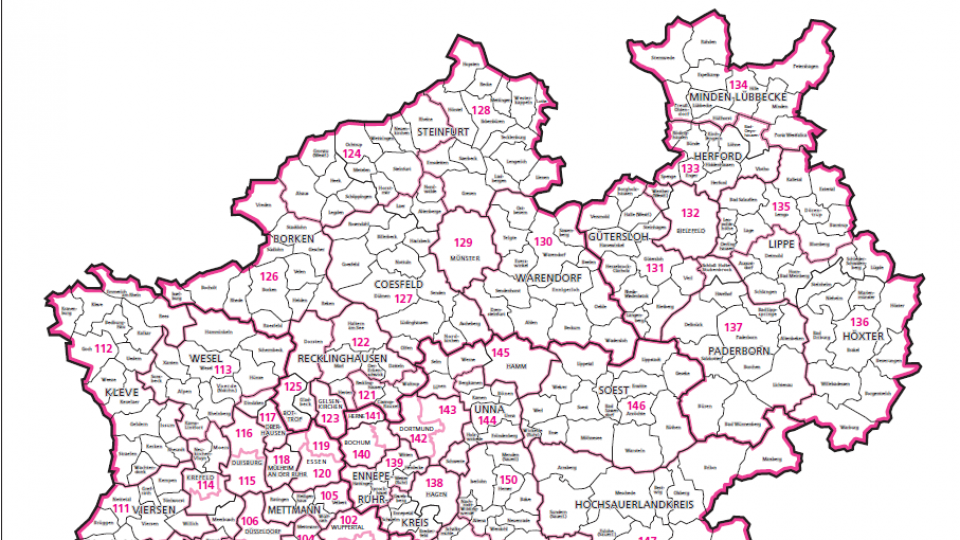Nordrhein-Westfalen NRW Vektorkarte Landkreise Gemeinden PLZ-2-3-5